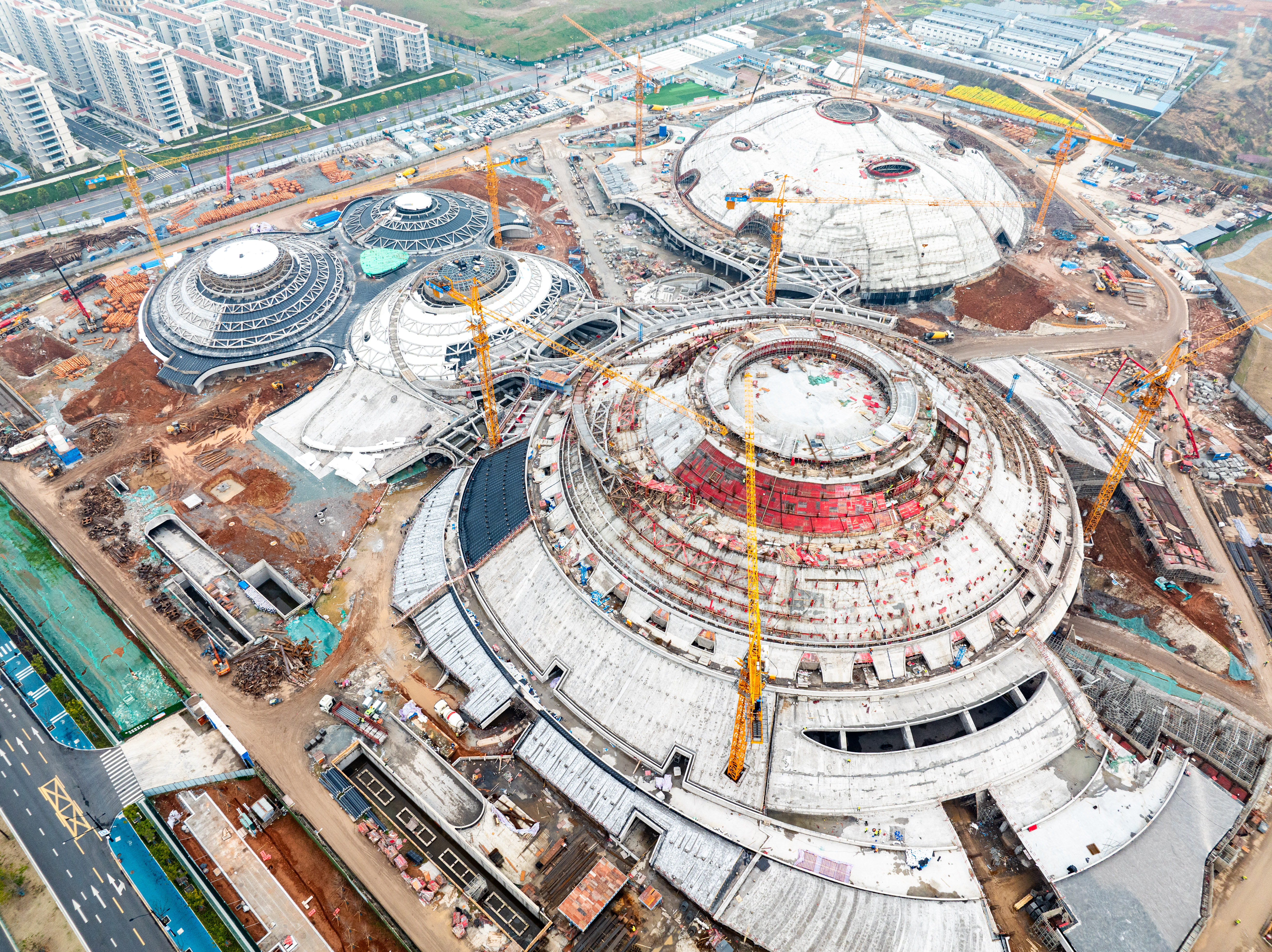 由中國五冶承建的成都露天音樂公園項目是第31屆世界大學(xué)生夏季運動會閉幕式主會場,項目主舞臺創(chuàng)新采用雙斜拱承雙曲拋物面索網(wǎng)結(jié)構(gòu)的創(chuàng)新設(shè)計,實現(xiàn)了雙面無遮擋觀演的極致體驗,建成世界最大全景聲半露天半室內(nèi)雙面劇場。過程中先后突破超厚大體積混凝土澆筑、大異形復(fù)雜鋼結(jié)構(gòu)施工等行業(yè)難題,榮獲魯班獎、詹天佑獎、中國鋼結(jié)構(gòu)金獎等國家級重磅榮譽。